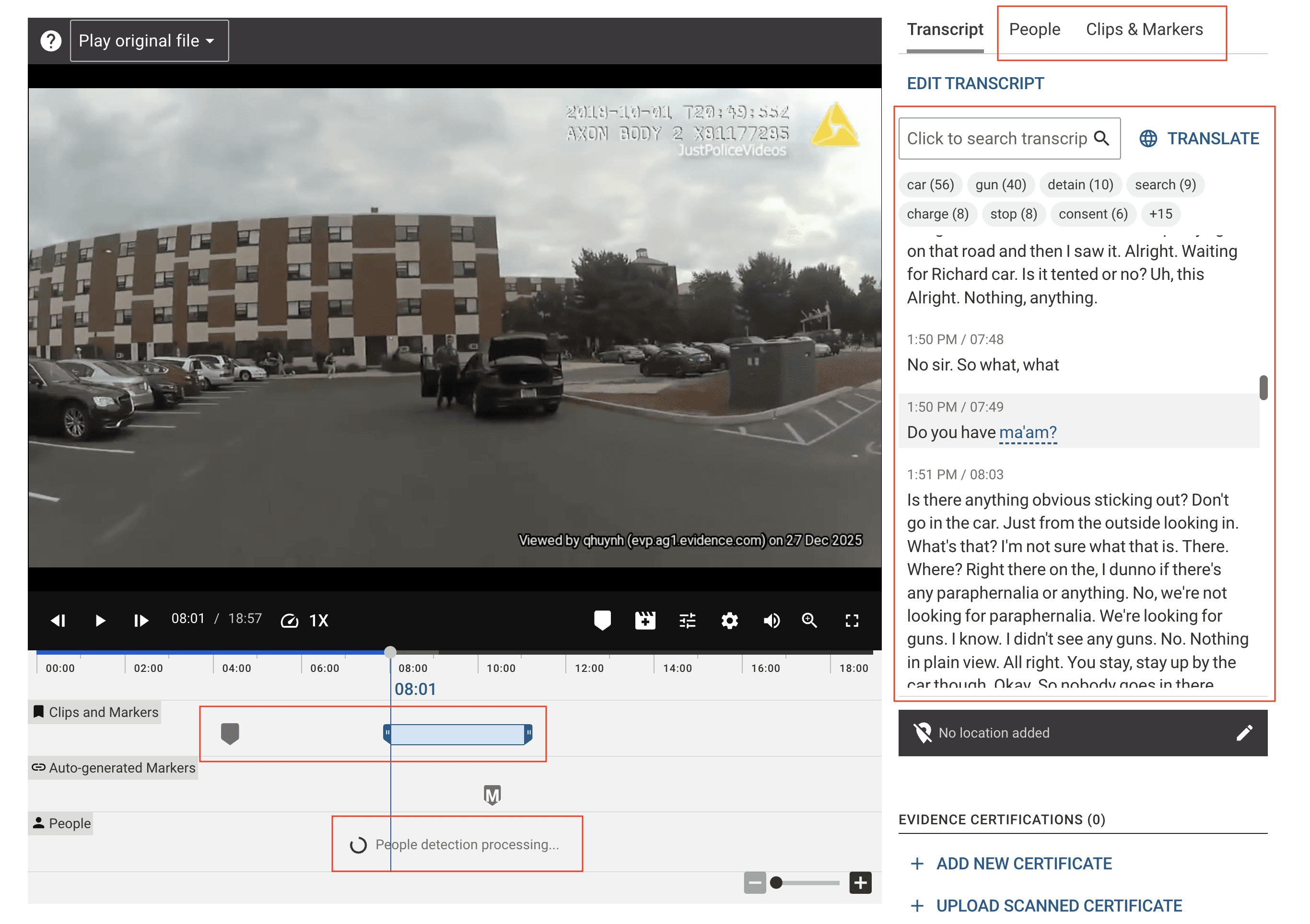 I had a clear sense of what I wanted to built (or try) It started from a simple frustration I kept coming back to. Evidence.com already has AI signals like Transcripts and People detections, but they live in different places. Reviewing footage still means a lot of scrubbing, guessing, and mentally stitching things together.